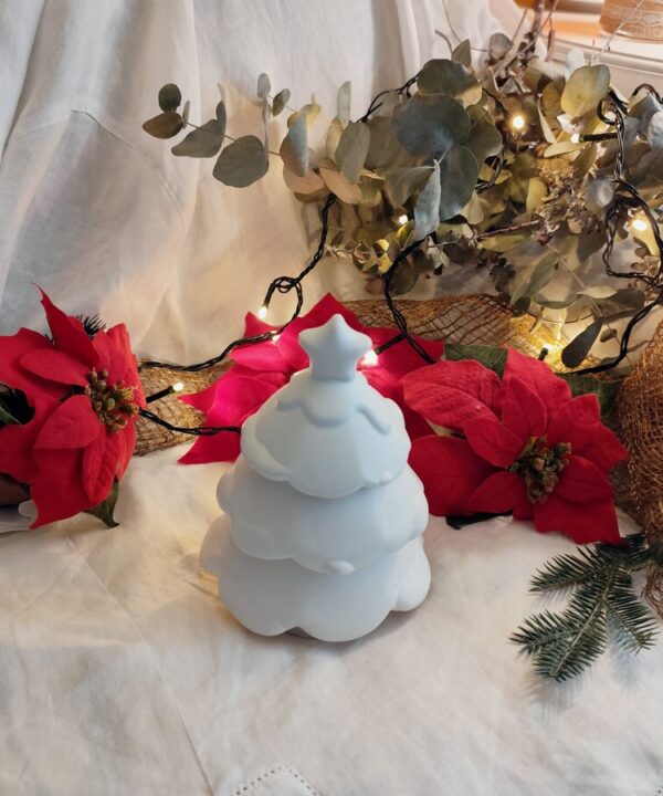 Árbol de Navidad de yeso con velas perfumadas | Detalle artesanal navideño